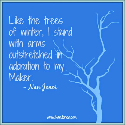 I’m a bit silvered around the edges now. My branches stand bare. Exposed. And yet I stand, sustained by the Vine. I stand with arms stretched wide, lifted up to the One who made me – the One who loves me. His Light reflects in my vulnerabilities, my complete dependence on Him. His love overflows into the broken crevices of my heart.