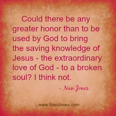 Could there be any greater honor on earth than to be used by God to bring the saving knowledge of Jesus – the extraordinary love of God – to a broken soul?