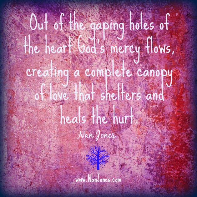 Out of the sharp, drastic cuts comes new, fruitful growth. Out of the gaping holes in the heart, God’s mercy flows, creating a complete canopy of love that shelters and heals the hurt.