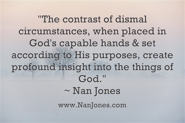 Through the extreme trials of recent months, I have come to realize that my faith has deepened. It has become rich, more valuable than precious gold, more beautiful than a burnished burgundy velvet. The world can’t take that away from me. It’s priceless. I’m learning that the contrast of dismal circumstances, when placed in God’s capable hands and set according to His purposes, create profound insight into the things of God.